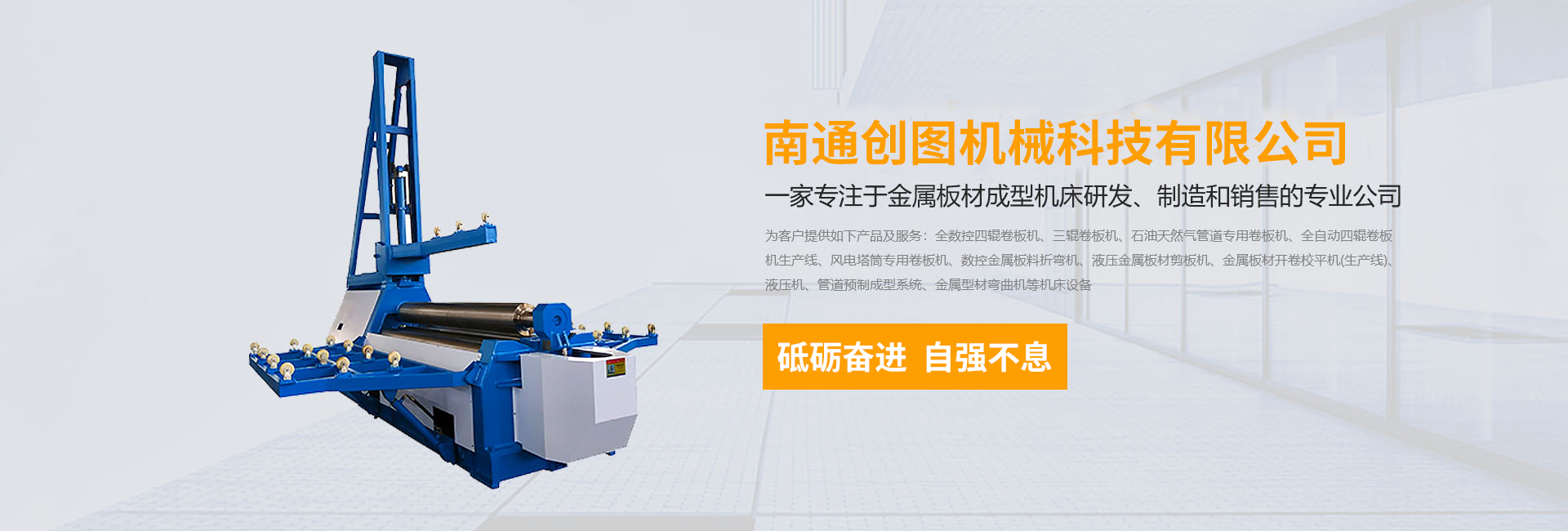 數(shù)控折彎?rùn)C(jī),剪板機(jī),刨槽機(jī),全數(shù)控四輥卷板機(jī)、三輥卷板機(jī)、石油天然氣管道專用卷板機(jī)、全自動(dòng)四輥卷板機(jī)生產(chǎn)線、風(fēng)電塔筒專用卷板機(jī)、金屬板材開卷校平機(jī)(生產(chǎn)線)、液壓機(jī)、管道預(yù)制成型系統(tǒng)、金屬型材彎曲機(jī)等機(jī)床設(shè)備,公司以精湛的設(shè)計(jì)能力,雄厚的加工制造能力,完善的售后服務(wù)能力,產(chǎn)品暢銷國(guó)內(nèi)20多個(gè)省、直轄市,并遠(yuǎn)銷德國(guó)、阿根廷、俄羅斯、印尼、伊朗等30多個(gè)國(guó)家和地區(qū)。